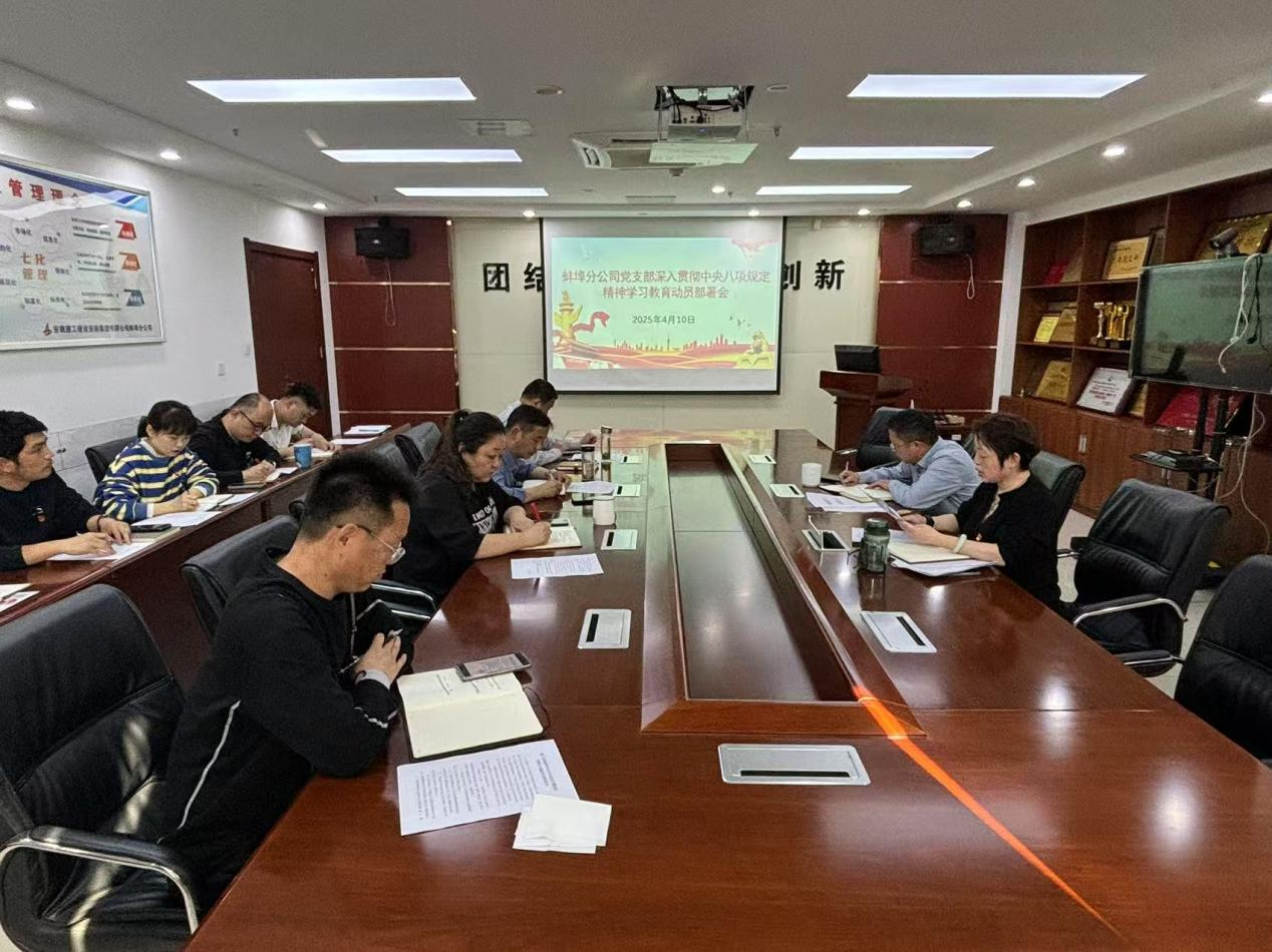 4月10日下午,建工安裝蚌埠分公司召開深入貫徹中央八項規定精神學習教育動員部署會。會議由黨支部副書記許素寒主持,分公司黨支部書記、經理趙銘亮作動員講話。